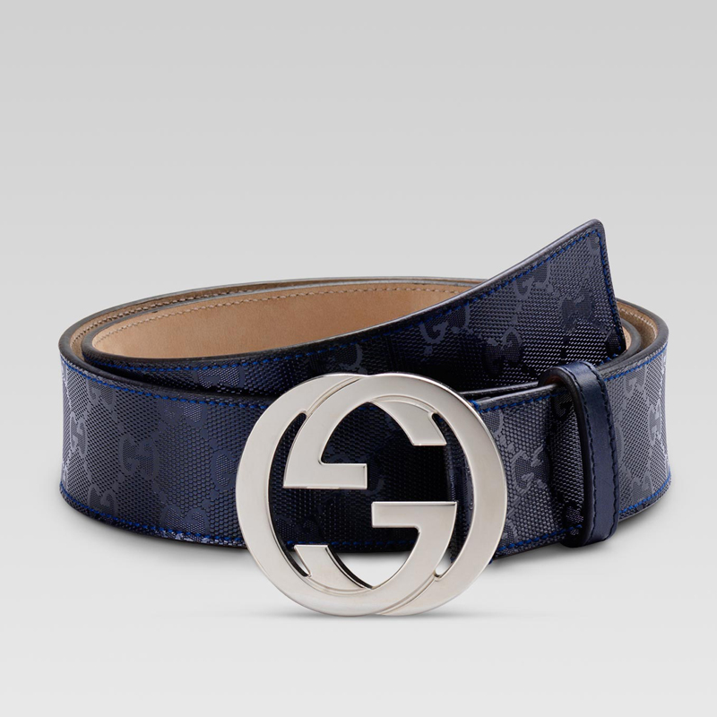 - iridescent blue GG coated fabric with blue leather trim - nickel hardware - 1.6" width