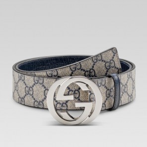 - beige/blue GG plus with blue leather trim - silver hardware - 1.6" width