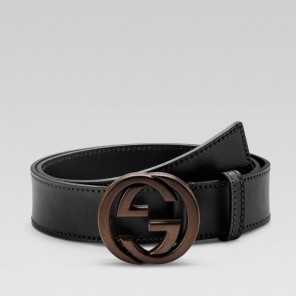 belt with leather interlocking G buckle.