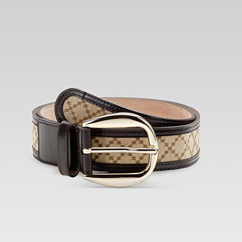 - beige/ebony diamante fabric with dark brown leather trim - light gold hardware - 4 cm width
