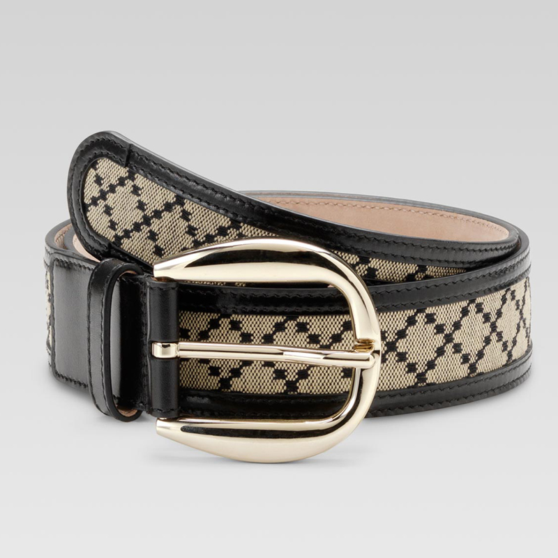 - beige/black diamante fabric with black leather trim - light gold hardware - 4 cm width