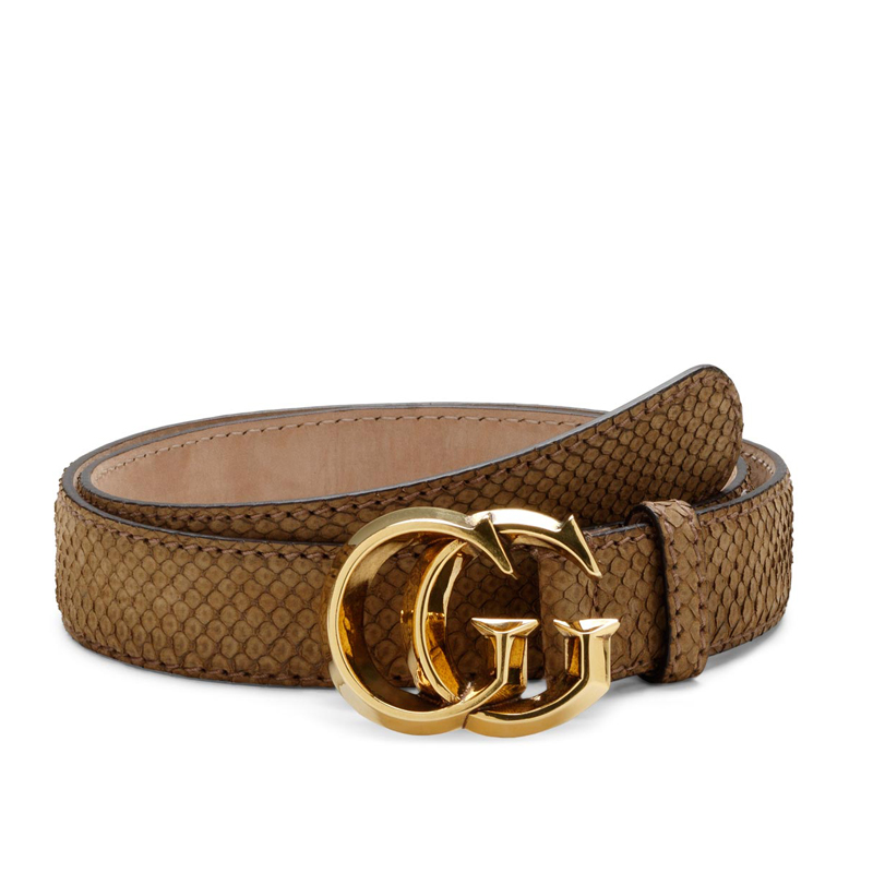 - light brown python with nubuck finishing - antique brass hardware- 1.2" width