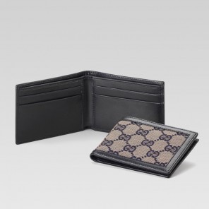 - beige/blue GG fabric with blue leather trim/interior - four card slots and one bill compartment