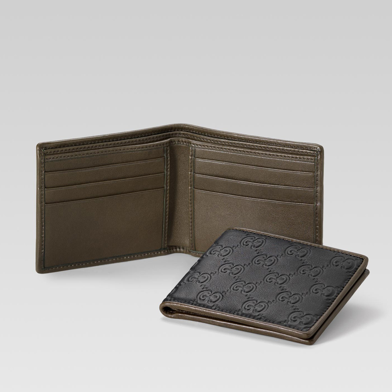 - black guccissima leather with military green trim/interior - six card slots and two bill compartments - closed: 11 x 9 x 1.5 cm