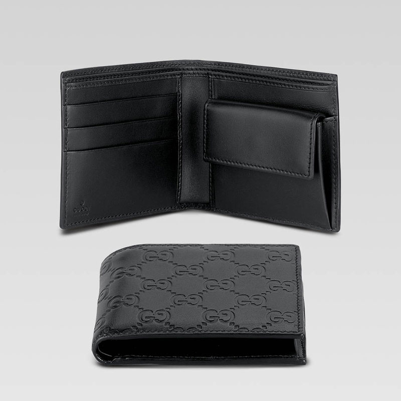 -black guccissima leather with black leather trim/interior-three card slots and two bill compartments-coin pocket