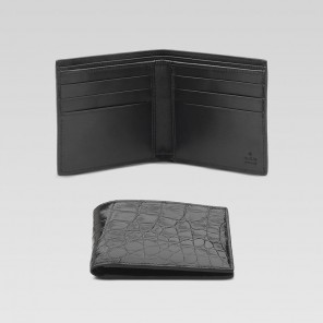 -black crocodile with black leather trim/interior-six card slots and two bill compartments