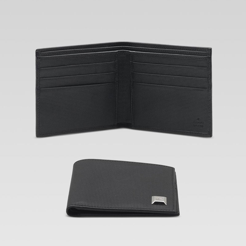 bi-fold wallet with engraved gucci script nail detail.