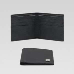 -black textured leather-silver hardware-six card slots and two bill compartments