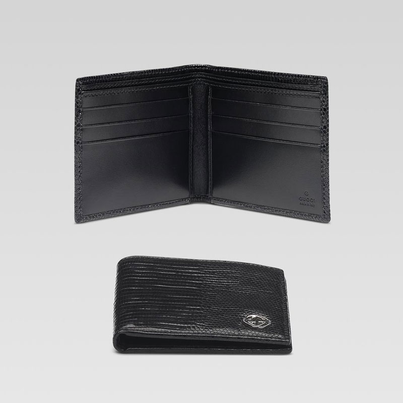 -black lizard with black leather trim/interior-nickel hardware-six card slots and two bill compartments