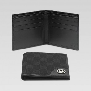-black GG fabric with black leather trim/interior-silver hardware-six card slots and two bill compartments