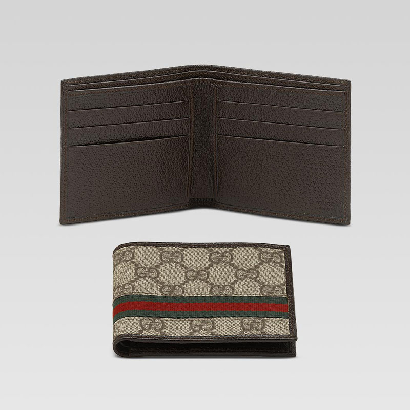 -beige/ebony GG plus with green/red/green web and brown leather trim/interior-six card slots and two bill compartments