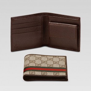 -beige/ebony GG plus with green/red/green web and brown leather trim/interior-three card slots and two bill compartments-coin pocket