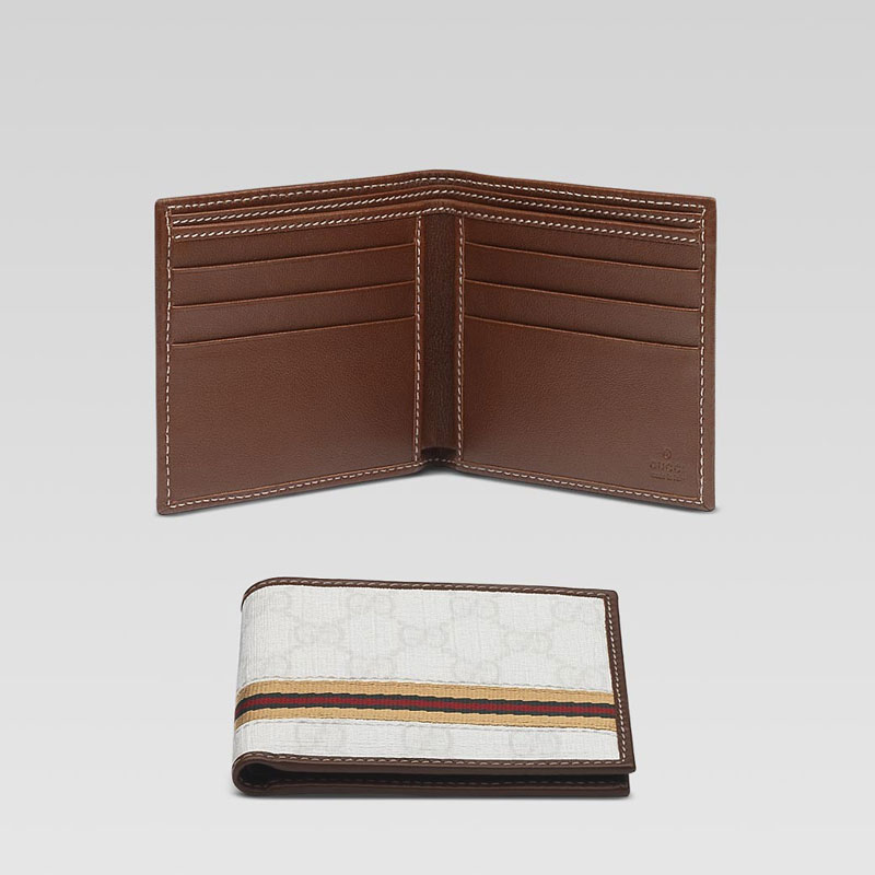 -white GG plus with beige/green/red web and light brown leather trim/interior-six card slots and two bill compartments