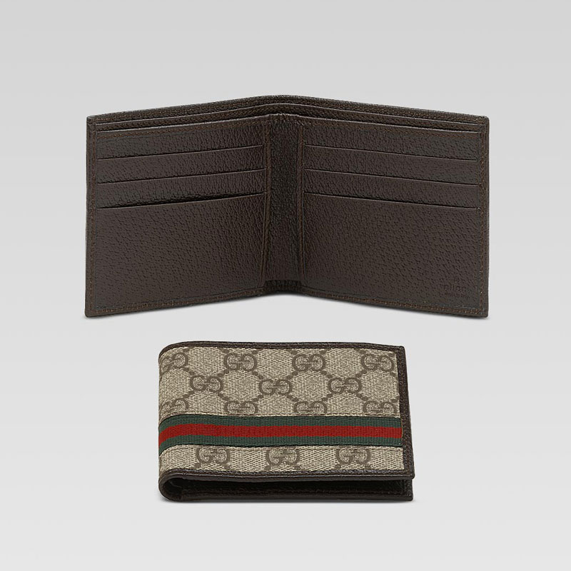 -beige/ebony GG plus with green/red/green web and brown leather trim/interior-six card slots and two bill compartments