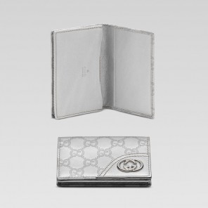 -silver guccissima leather with silver leather trim/interior-light gold hardware-one card slot and one compartment-website exclusive