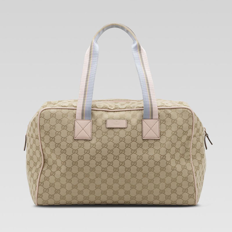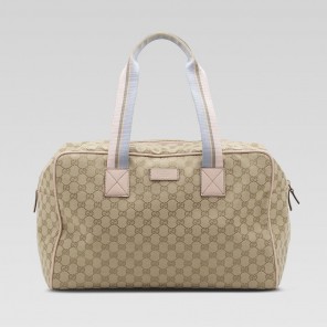 -sand GG fabric with pink leather trim-double handles in multi-color web-zip-top closure-inside zip pocket
