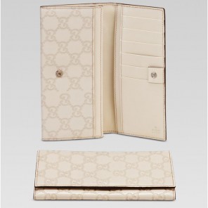 -white guccissima leather with white leather trim/interior-snap closure-six card slots and two bill compartments-coin pocket