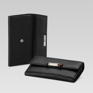 continental wallet with bamboo and engraved gucci script logo bullet detail.