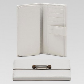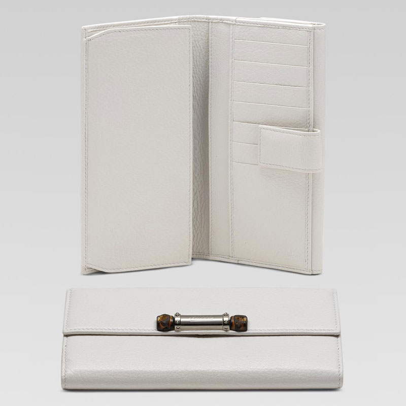 continental wallet with bamboo and engraved gucci script bullet detail.