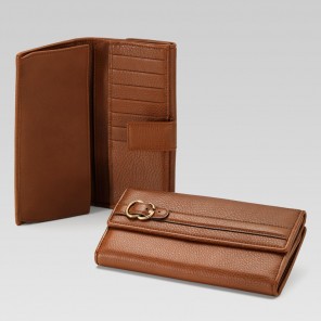 - cuir leather - antiqued gold hardware - snap closure - seven card slots and two bill compartments - coin pocket - closed: 7.5"L x 1.2"W x 3.9"H
