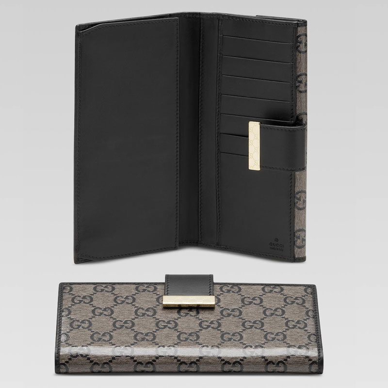 continental wallet with engraved GG pattern detail.