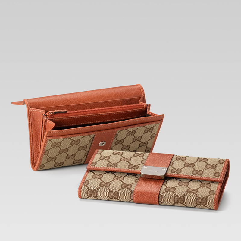 continental wallet with engraved gucci logo and studs.