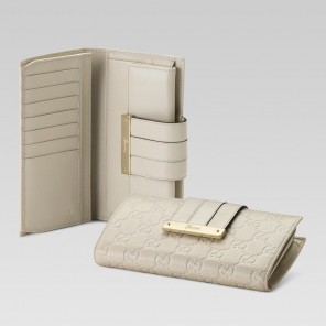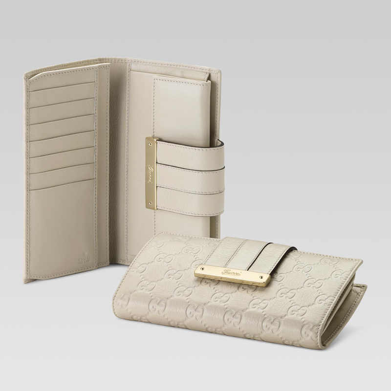 continental wallet with engraved gucci script logo.