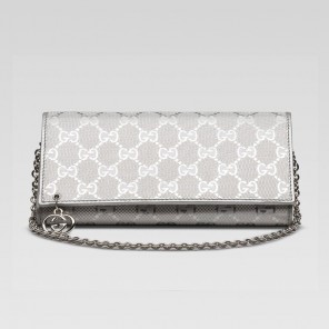 -silver GG coated fabric with silver leather trim/interior