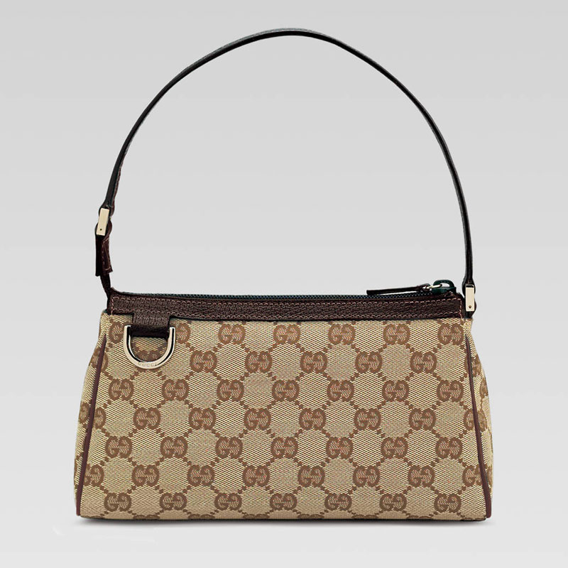 -beige/ebony GG fabric with brown leather trim-light gold hardware-single shoulder strap-zip-top closure