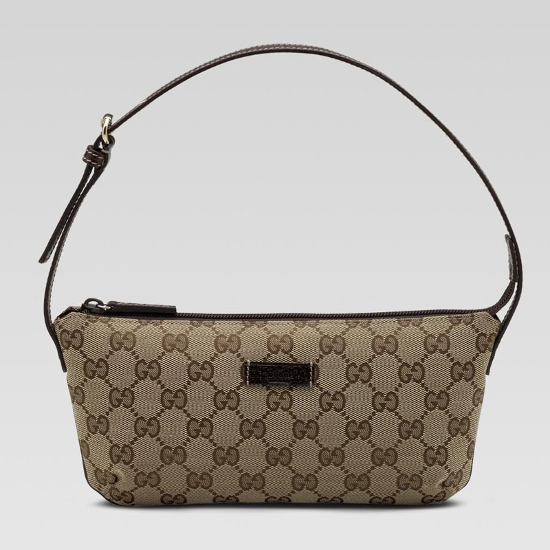 -beige/ebony GG fabric with brown leather trim-adjustable strap with horsebit ring buckle-zip-top closure