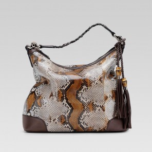 gucci eva hobo with woven leather, tassels, and bamboo detail.