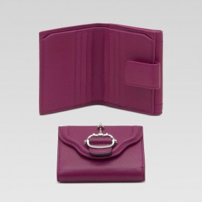 -magenta leather-nickel hardware-snap closure-six card slots and one bill compartment-coin pocket-website exclusive