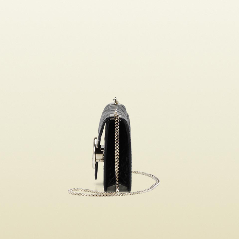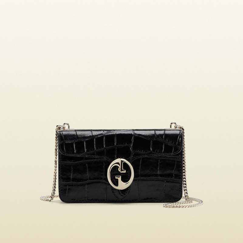 gucci 1973 black crocodile chain shoulder bag