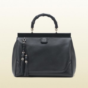 - detachable leather covered resin bamboo shaped detail with leather tassel and buckle