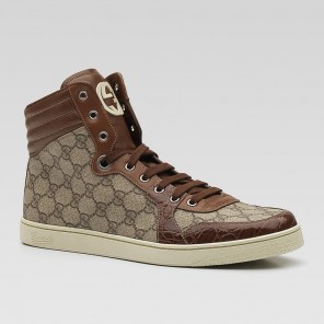 - beige/ebony GG plus with light brown leather and crocodile trim- rubber sole- round toe- we recommend sizing down a half size