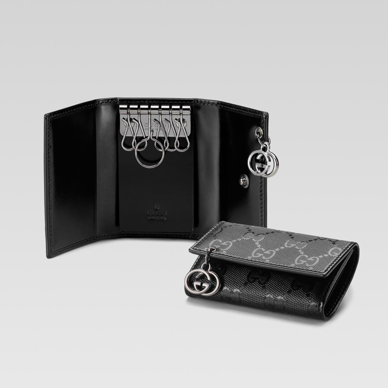 - black GG imprime with black leather trim/interior and ruthenium hardware. - six key hooks
