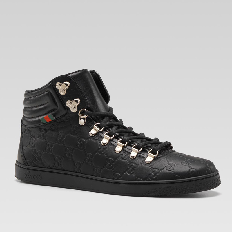 - black rubberized guccissima leather with black rubberized leather trim and - green/red/green signature web