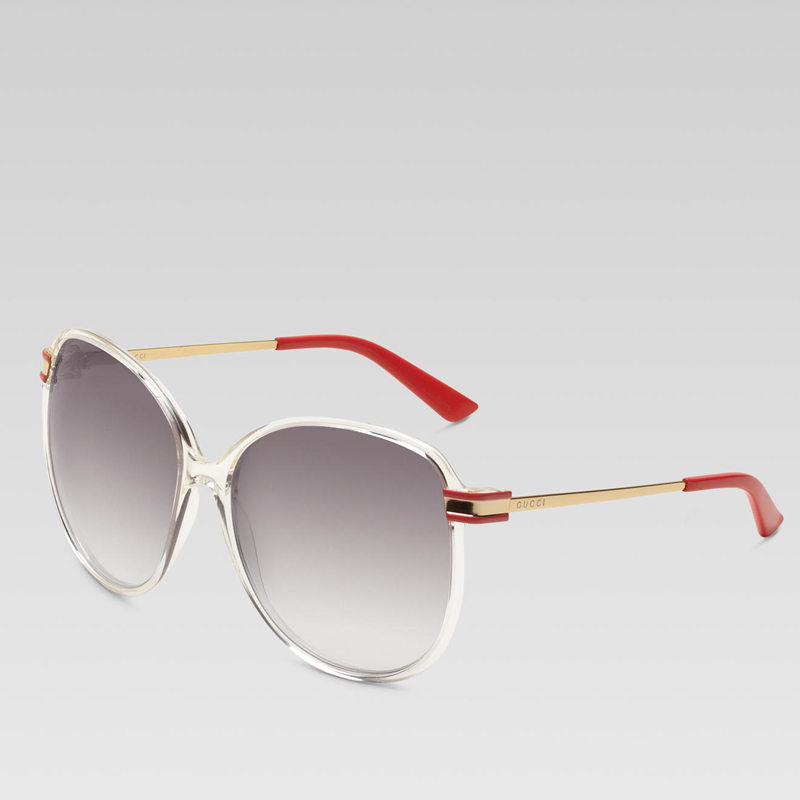 large round frame sunglasses with gucci logo and signature web detail on temple