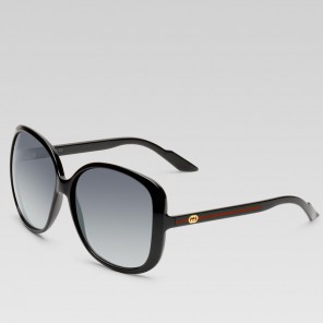 - black plastic frame with green/red/green web - grey gradient lens - 100 UVA/UVB protection - GG 3157/S