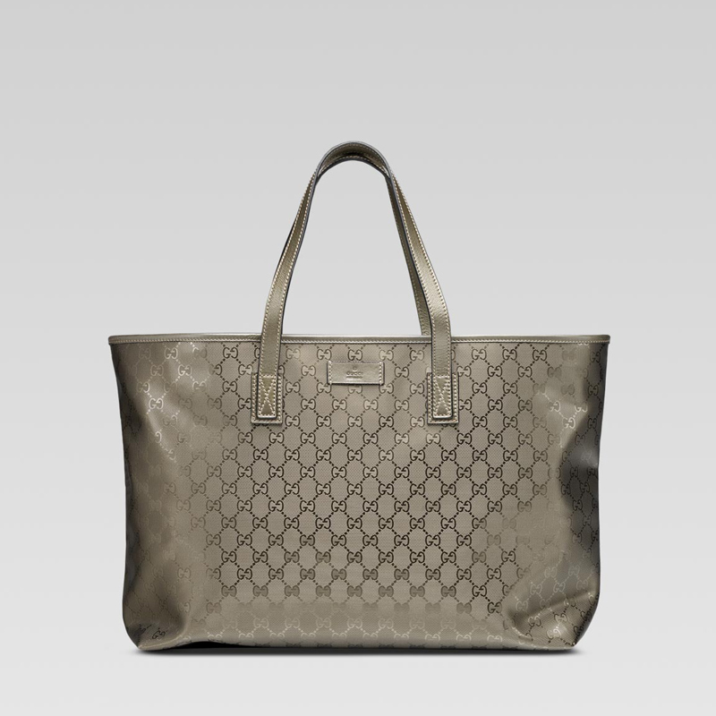 - gunmetal GG imprime with gunmetal leather trim - gunmetal hardware - double shoulder straps - zip-top closure - inside zip, mobile and pda pockets
