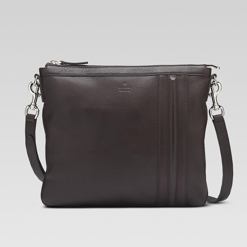 - brown leather - nickel hardware - adjustable and detachable shoulder strap - zip-top closure - inside zip, mobile phone, and pda pockets