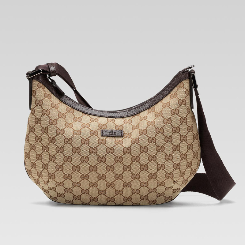 - beige/ebony GG fabric with brown leather trim - ruthenium hardware - adjustable shoulder strap - zip-top closure - inside zip and mobile phone pockets