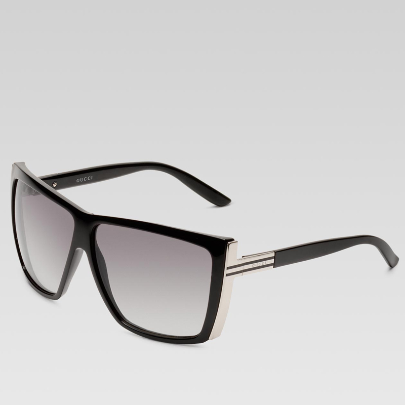 - black plastic and silver metal frame with grey web - grey gradient lens - 100% UVA/UVB protection - GG 3127/S