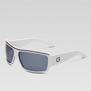 - white plastic frame with blue and red detail - grey lens - 100% UVA/UVB protection - GG 1621/S