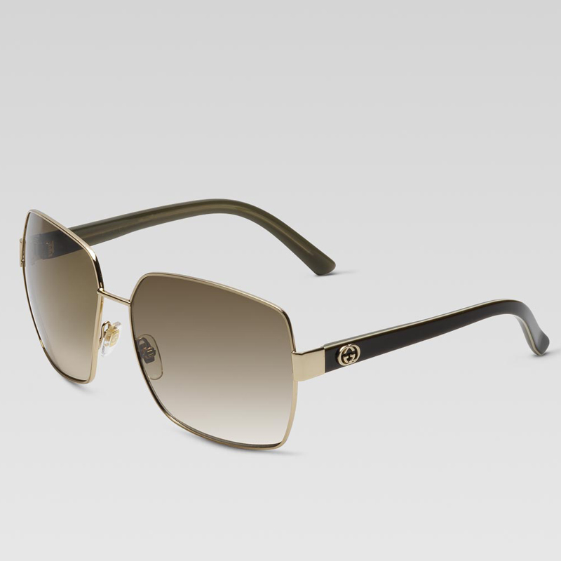 - gold and khaki metal frame - brown gradient lens - light gold hardware- 100% UVA/UVB protection - GG 2866/S