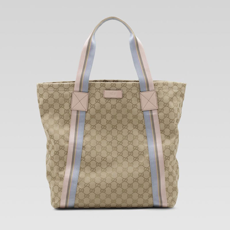 -sand GG fabric with pink leather trim-double handles in multi-color web-inside and cell phone pockets
