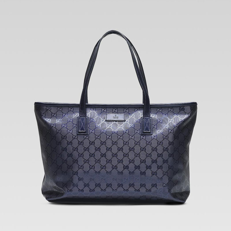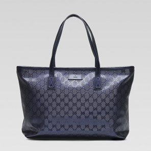 -iridescent blue GG coated fabric with blue leather trim-double shoulder straps-zip-top closure-inside pocket-website exclusive