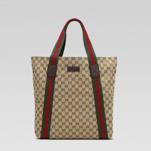 - beige/ebony GG fabric with brown leather trim - ruthenium hardware - double handles in green/red/green signature web - inside and mobile phone pockets