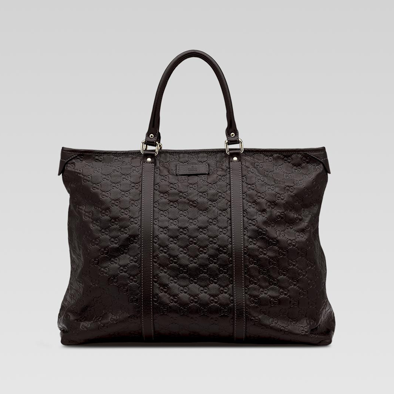 - dark brown guccissima leather with dark brown leather trim - light gold hardware - double handles - zip-top closure - inside zip and mobile phone pockets