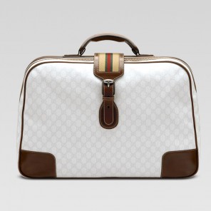 -white GG plus with beige/green/red web and light brown leather trim-double handles-zip-top closure-inside pocket
